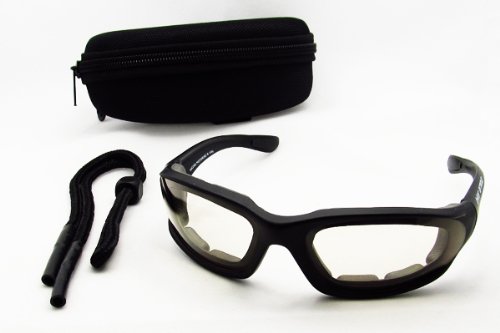 Ride all day and night without changing sunglasses with Biker Armour Photochromic Motorcycle Sunglasses. Photochromic lenses change from clear to dark smoke in less than 20 seconds when exposed to sunlight. Lenses are constructed of impact resistant polycarbonate tp protect your eyes from harmful projectiles. Also equipped with a foam cushion gasket to block wind, dust and debris so you can ride without squinting or tearing. FITS MEDIUM TO XLARGE HEADS. Free microfiber cleaning case, zipper clip hard case and sunglass string included!